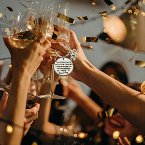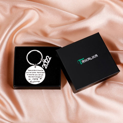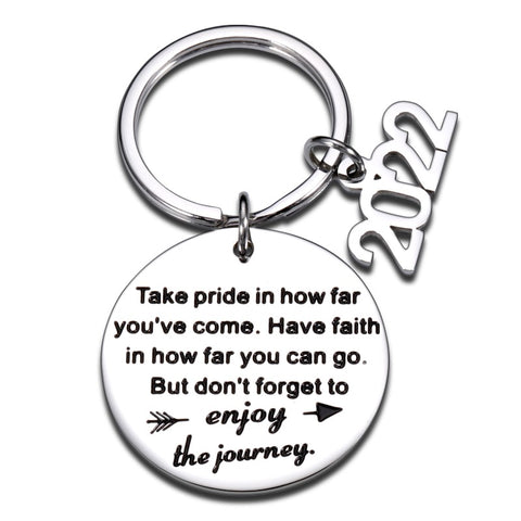 -With a 2022 charm pendant, encouragement quote deeply engraved on the keychain.