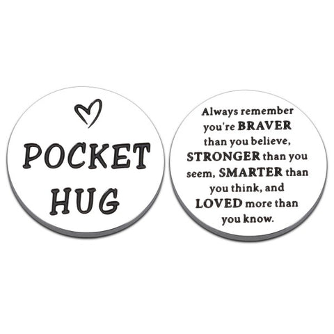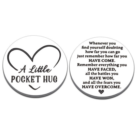 • Pocket Hug Token: Front “Pocket Hug” Back “You are strong, you are awesome, you are loved, you are not alone, you are tough, you are brave, you are a fighter.” With motivational words, the little pocket hug coin makes a great gift for family members, son, daughter, brother, cousin, dad, aunt, uncle, boyfriend, girlfriend, husband, wife, best friend, coworker. When he/she is going through a tough time, difficult time, depression, working stress, this keepsake can encourage them and cheer them up.