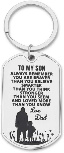 Tritiara to My Son from Dad Gift Keychain Inspirational Gifts for Men Always Remember You are Braver Than You Believe Key Ring Charm Family Gifts-Graduation Birthday Christmas Wedding Day Dog Tag Pendant