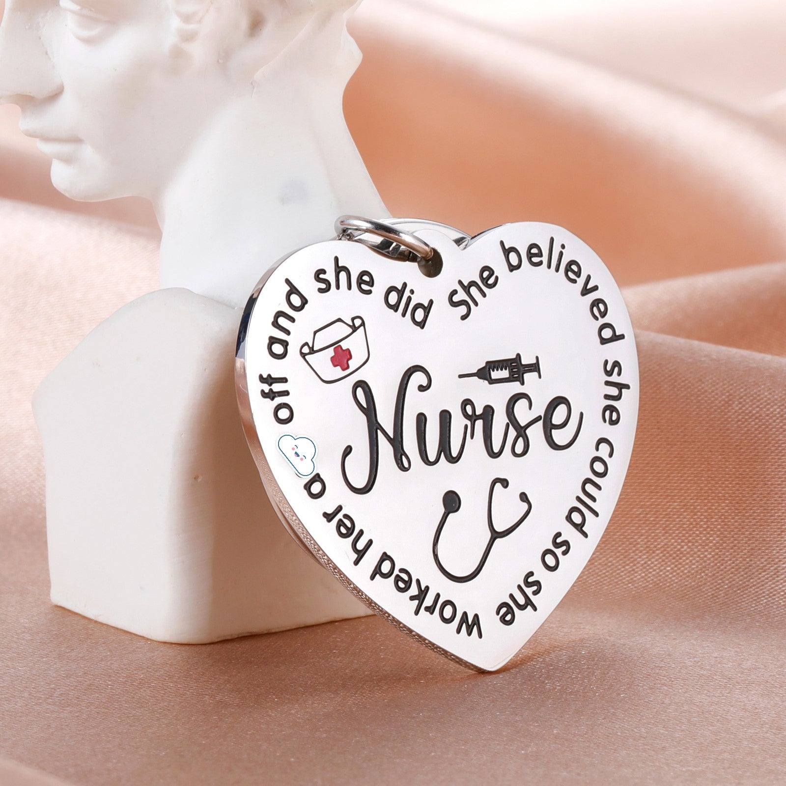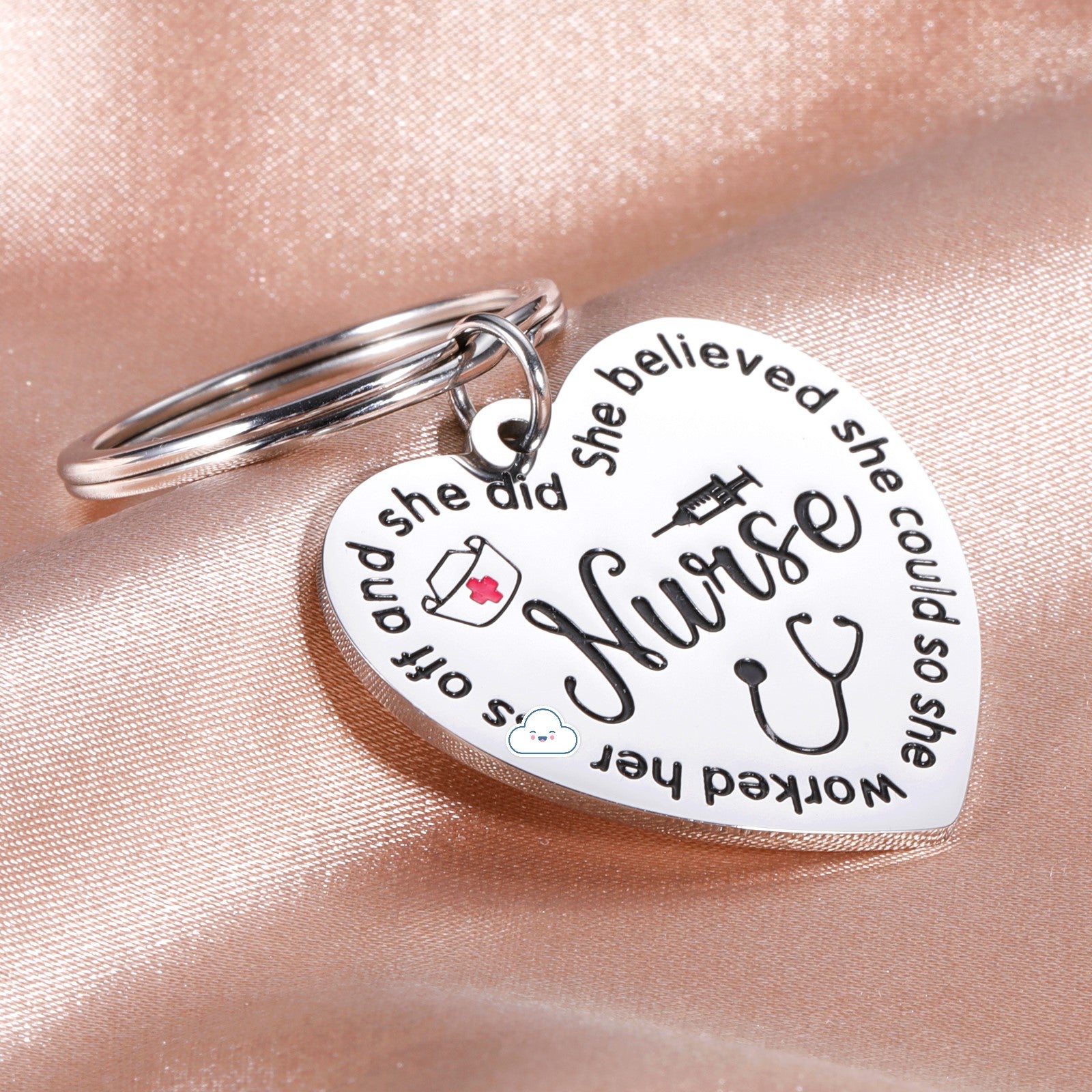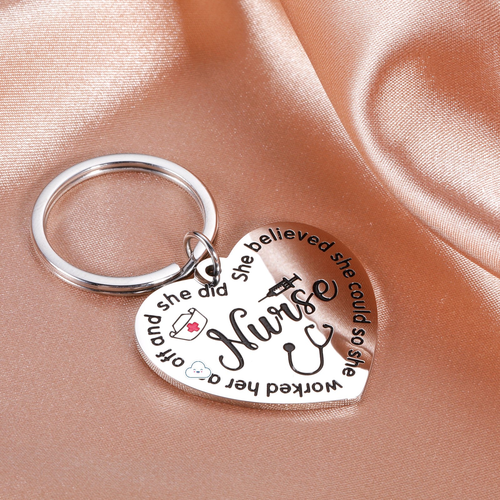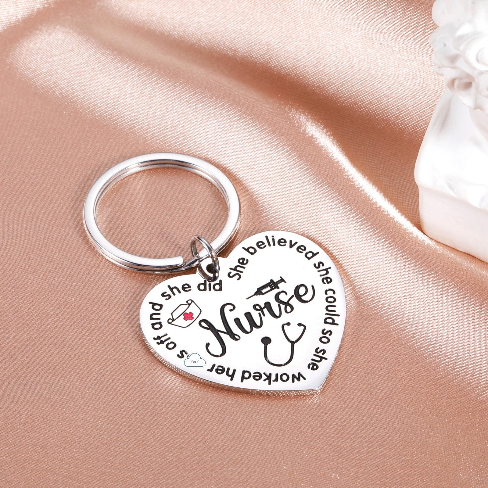 - Thank You Appreciation Gifts for Nurse: The heart shaped nurse keychain means nurse is always with us all the time, she cares every heart beat of us. The charm pendant for nurse coworker, nurse preceptor, nurse educator as nurse thank you gifts, appreciation gifts, retirement gifts, leaving job gifts. The keyring is pack with an elegant box and ready for gift giving.