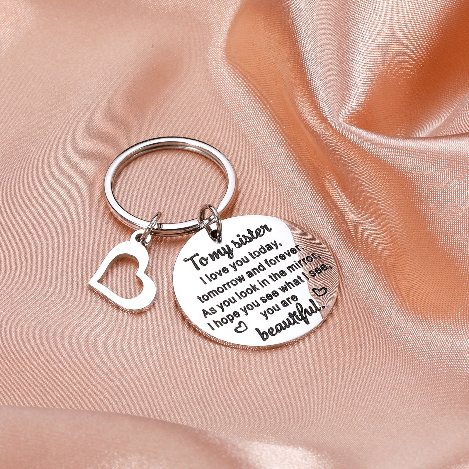 • Unique Sister Gifts Keychain: Sister is like a close friend, you can talk to her, share secret with her and lean on her. Thank you for always being there, encouraging, concern and support. Sister gifts keychain perfect for big sister, little sister, step sister, sister in law, new sister, sister to be, bestie, best friend, best sister, soul sister, sister friends. Give this heartfelt gifts for your sister on birthday christmas, everytime she sees the keychain she will think of you.