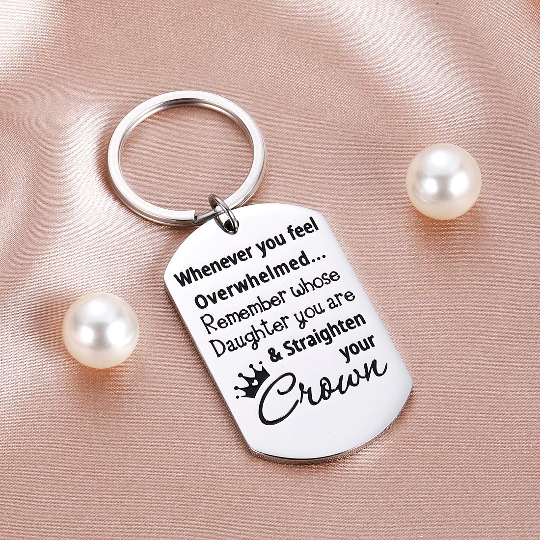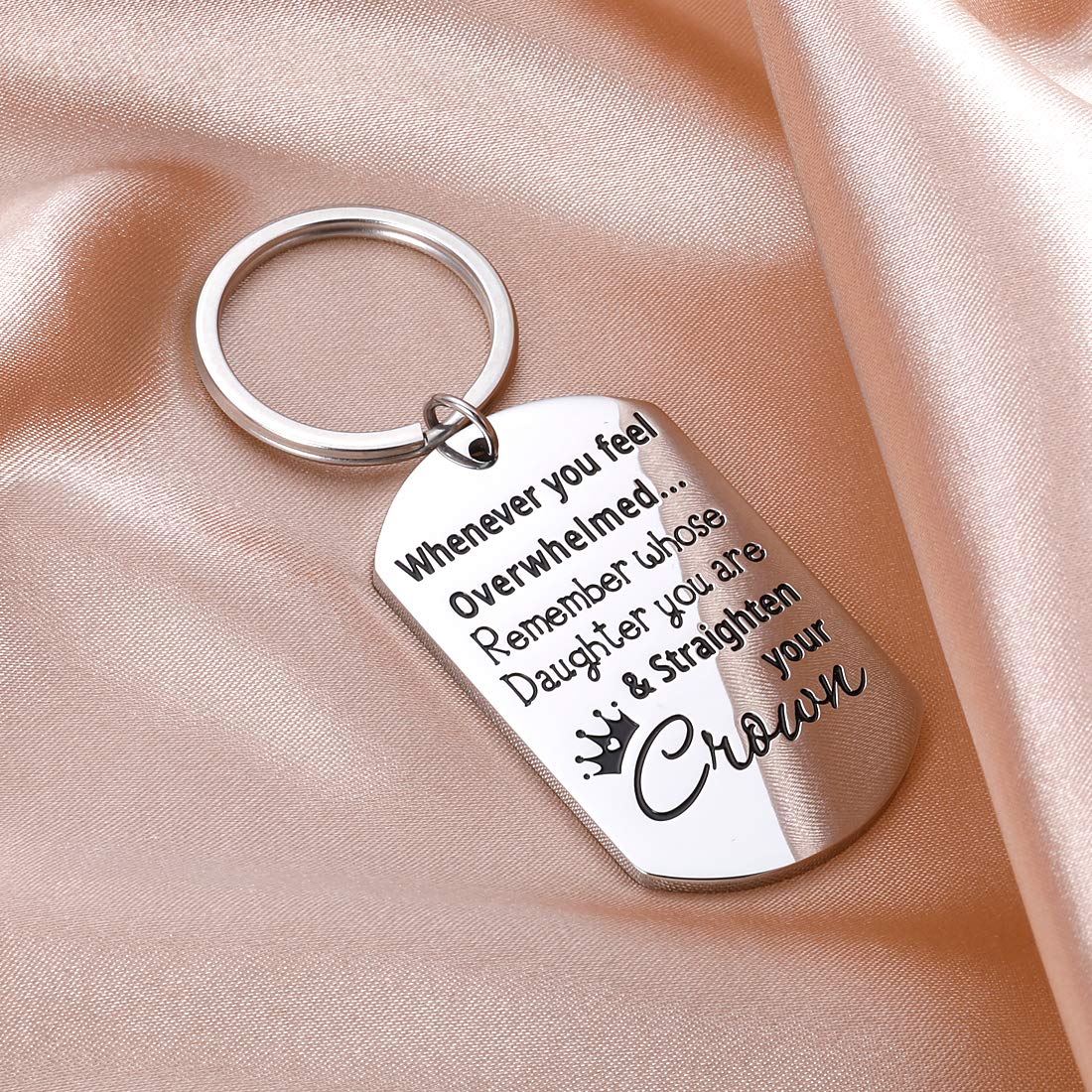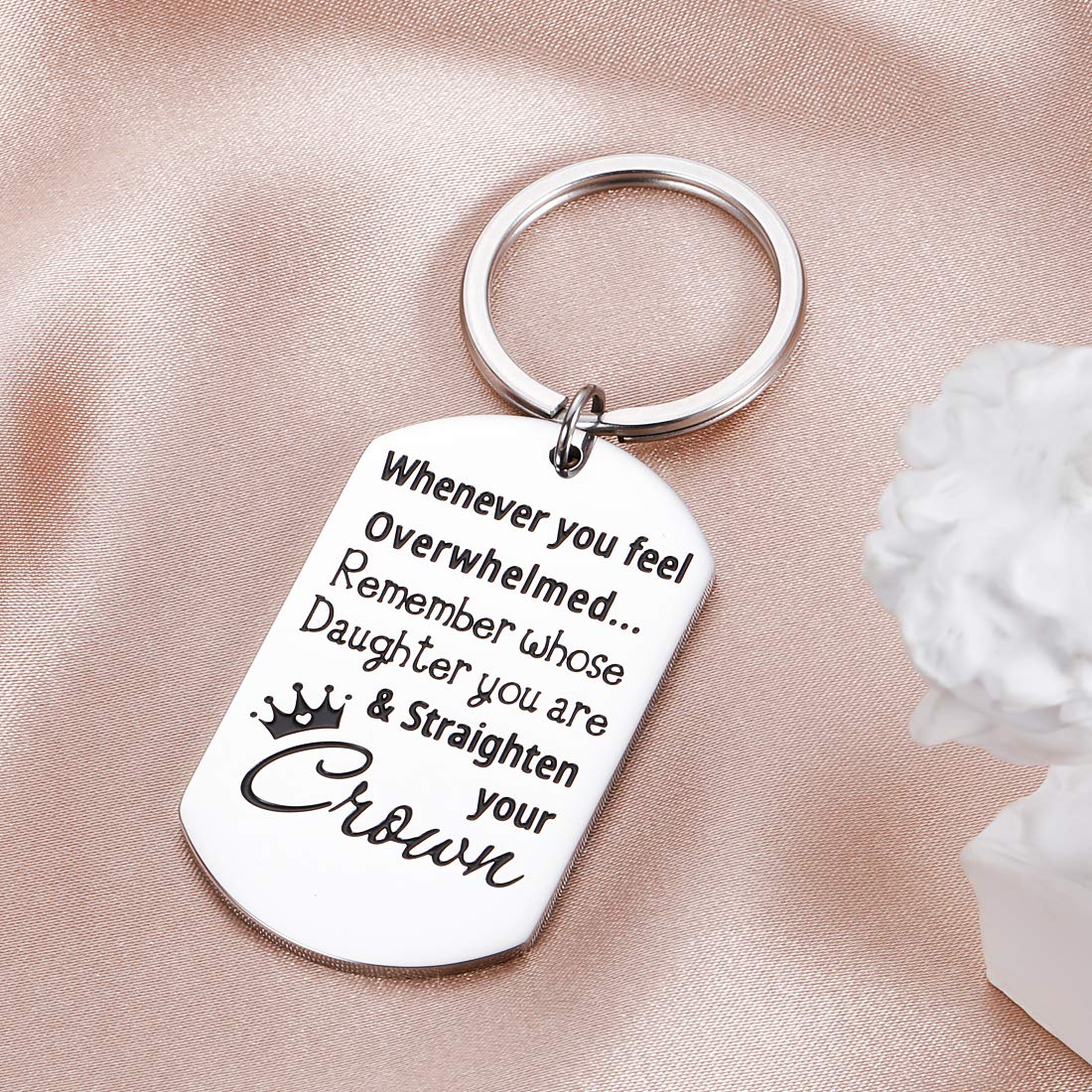 • BIRTHDAY GIFT FOR WOMEN: This inspirational KEYCHAIN with :Whenever you feel overwhelmed...remember whose daughter you are and straighten your crown -makes a beautiful sympathy gift to a friend who is grieving a loss or struggling to overcome illness or disease