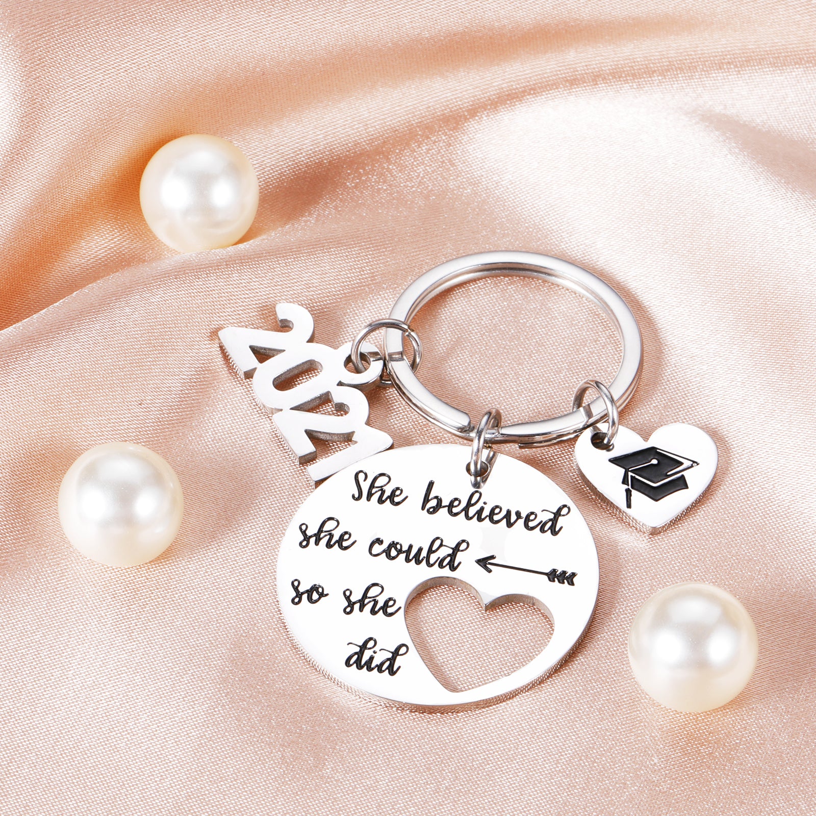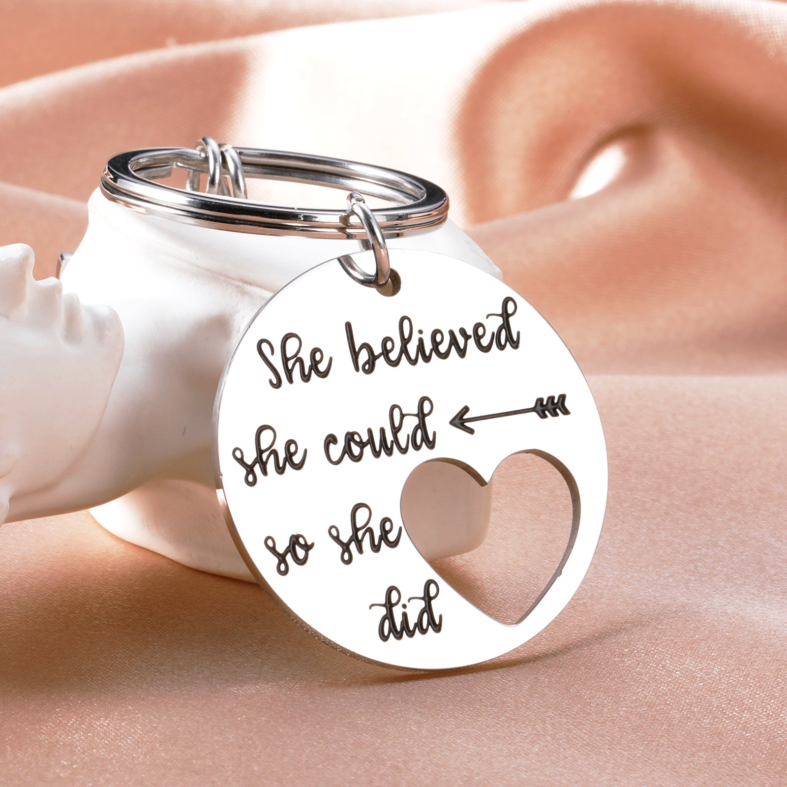- 👩‍🎓Motivational Message for Graduating Students: With the quote “She Believed She Could So She Did” to encourage the graduate girls to step forward and always believe in themselves, a perfect message for a grad with a dream they are pursuing. Give this keychain to someone your love, you will receive with a huge smile and enthusiastic cheer.
