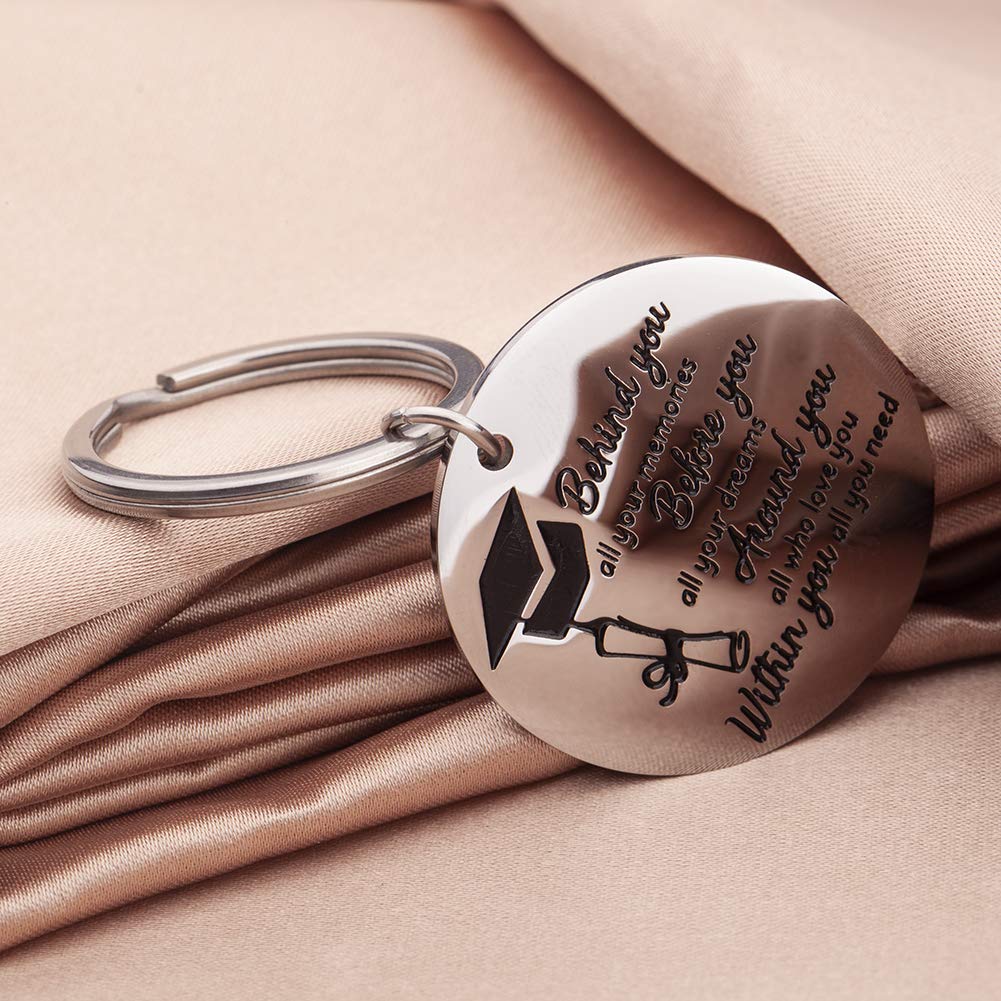 - College Student Gifts - This gorgeous keychain comes engraved with, " Behind You All Memories Before You All Your Dream , Around you, all who love you. Within you, all you need". It's perfect Graduation Gifts for you and your friends / students!