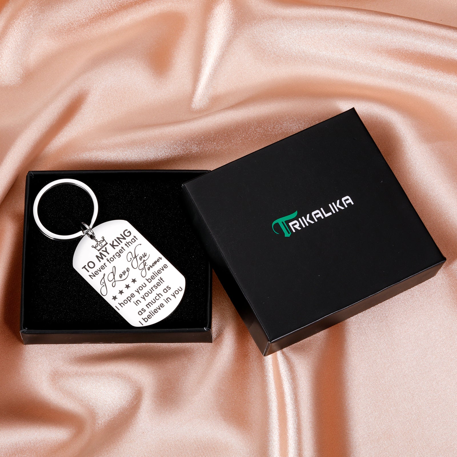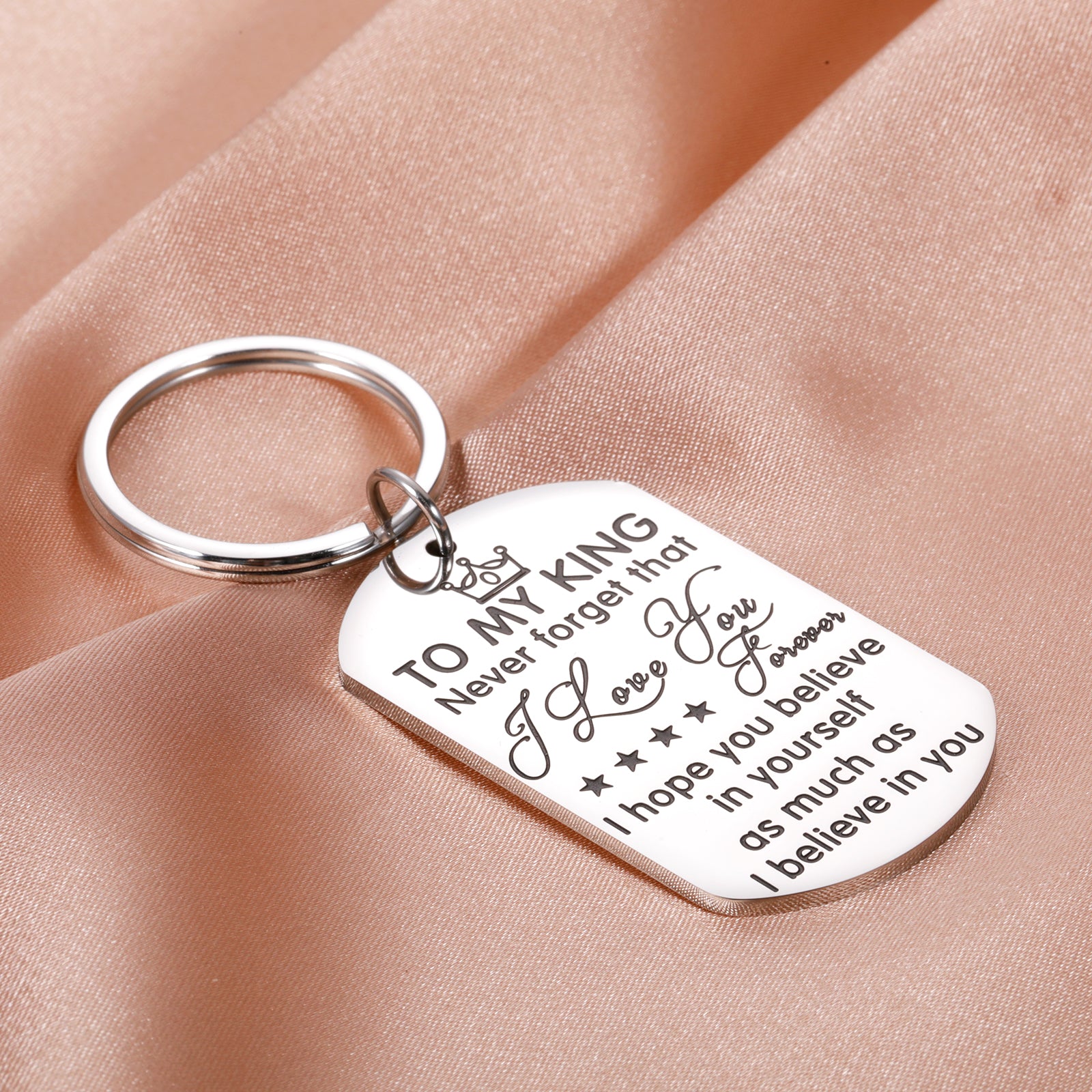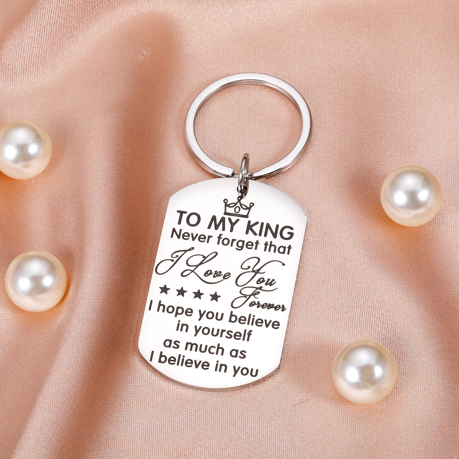 • ♥Soulmate Lover Gifts: Simple cute gifts keepsake for boyfriend, I love you gifts for him, fiance gifts for men, graduation gift for him, keychain for boyfriend, 6 month anniversary gift, christmas presents for men, fathers day gift from girlfriend, love gifts for him. This to my king jewelry is made with stainless steel, it is lead free and nickel free, hypo allergenic. Pack with an elegant box, this item is ready for gift giving.