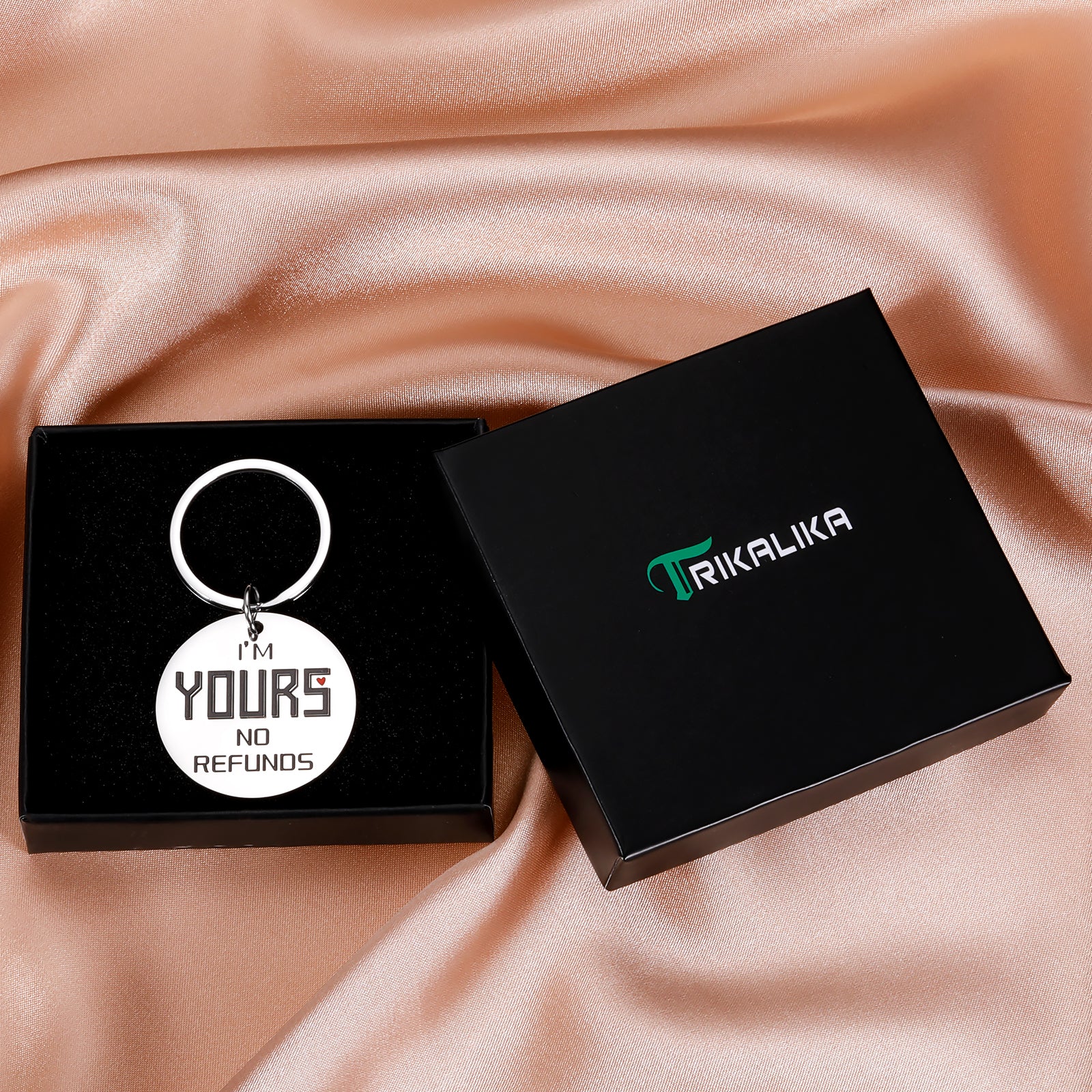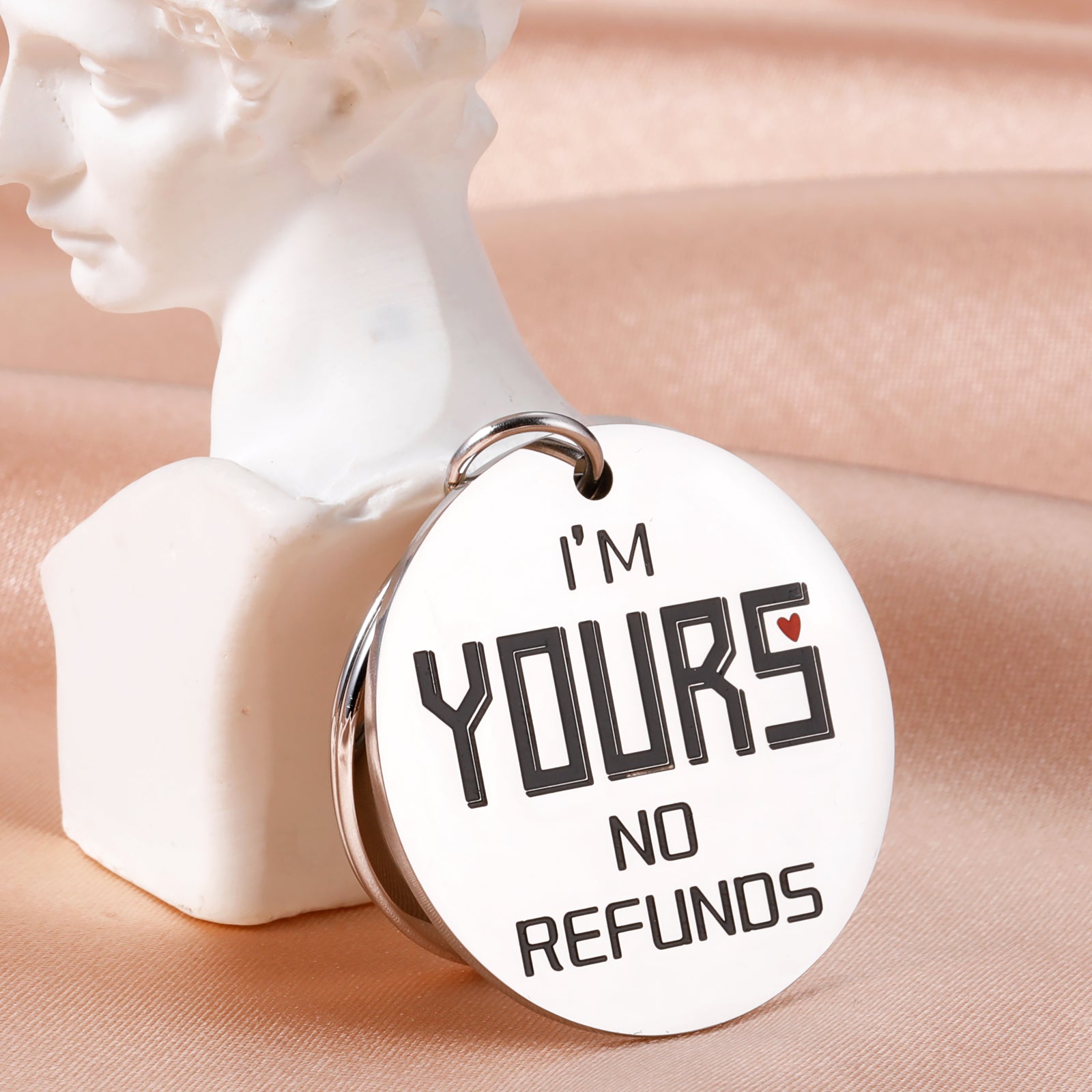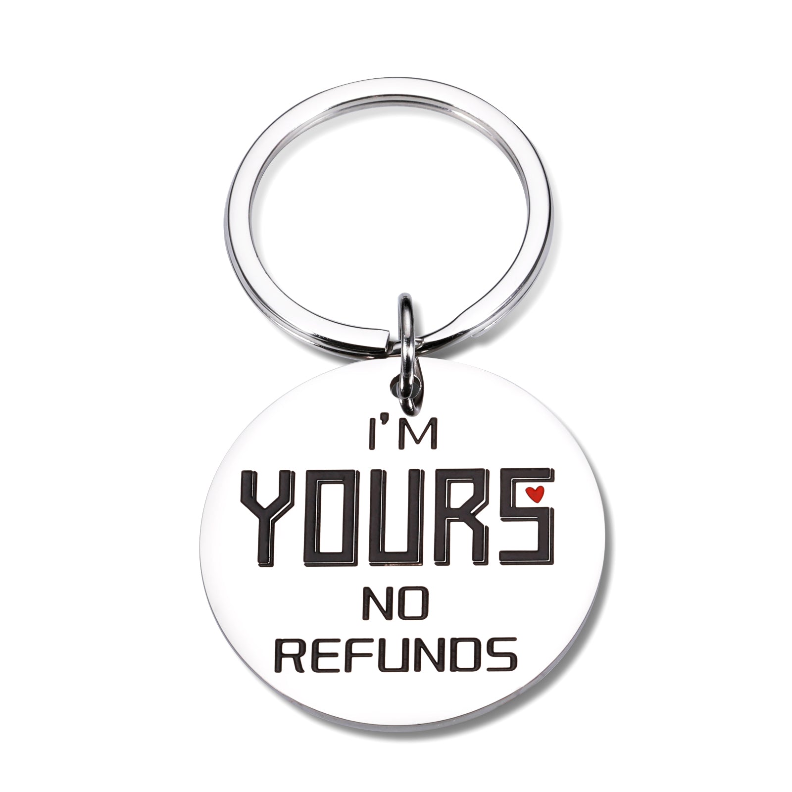 Valentines Day Gifts for Boyfriend Husband Anniversary Birthday Wedding Gifts for Men Him Her Couple I’m Yours No Refunds Keychain Fiance Girlfriend Wife Engagement Fathers Day Christmas Love Gifts